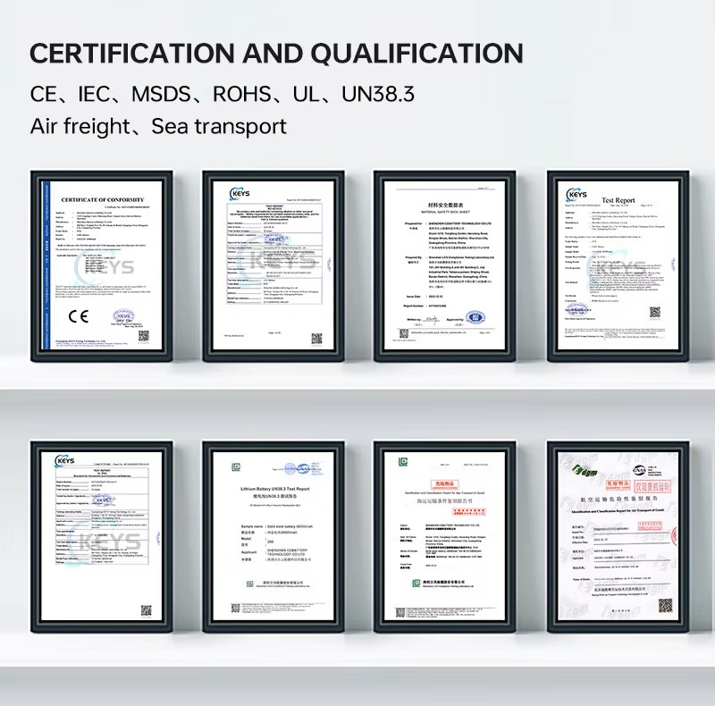 НашиотНови батерии со цврста состојбасе овластени да ги исполнат меѓународните стандарди, обезбедувајќи безбедност и сигурност: